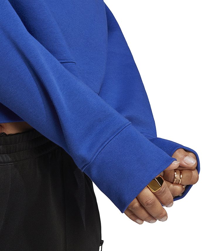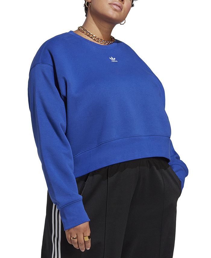 A relaxed take on a classic, this plus size adidas pullover sweatshirt is styled in soft fleece with drop shoulders and wide waistband to let you move in total comfort. Mix up the vibe with denim or wide-leg trousers, or keep it head-to-toe casual with matching sweat pants for an elevated take on loungewear.
