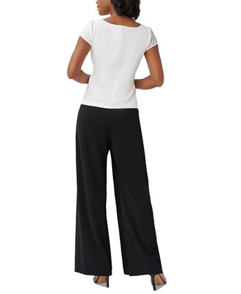 Soutache trim swirls across the sheer asymmetrical insert of this Adrianna Papell top to deliver a fresh slant on elegant style.