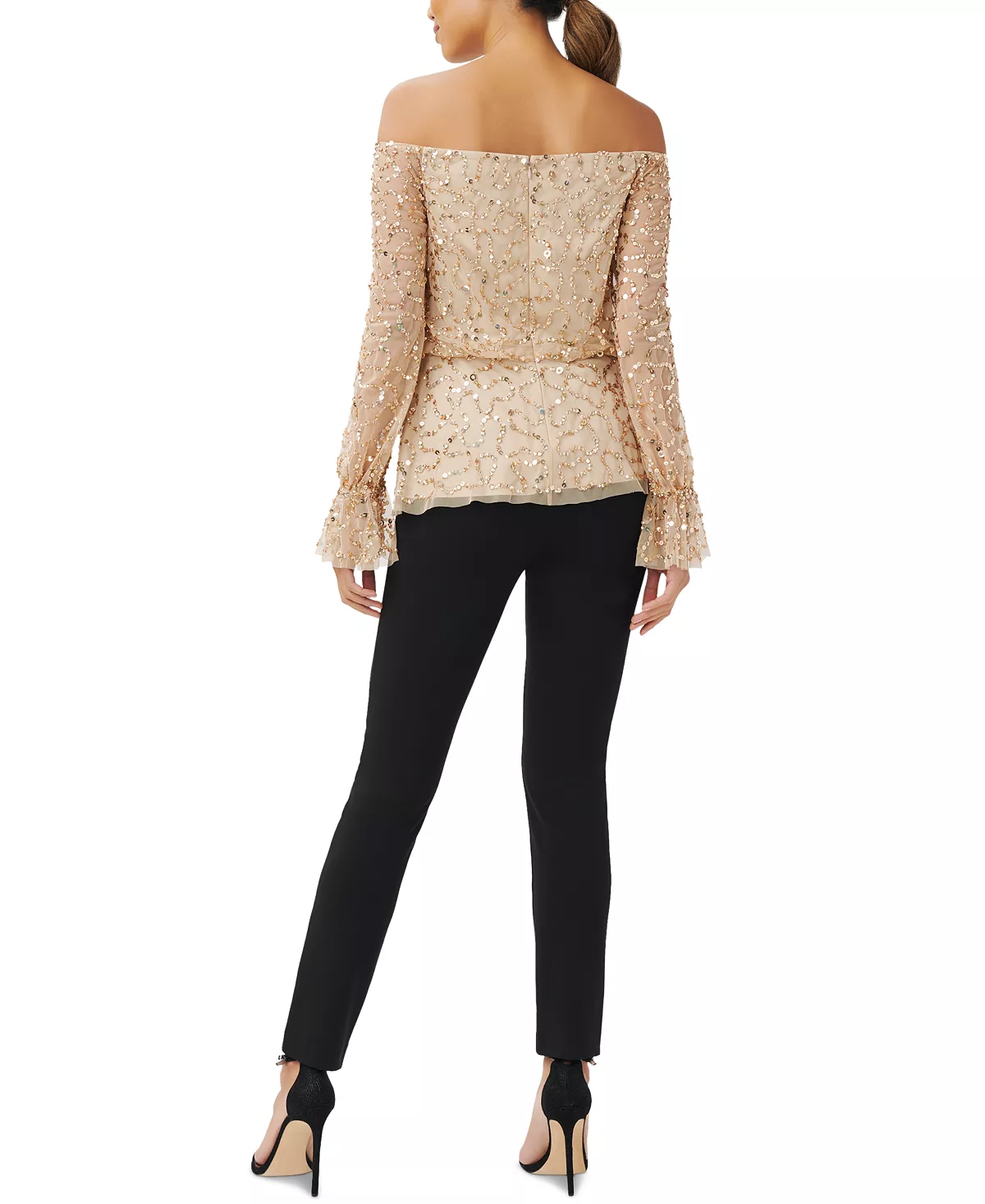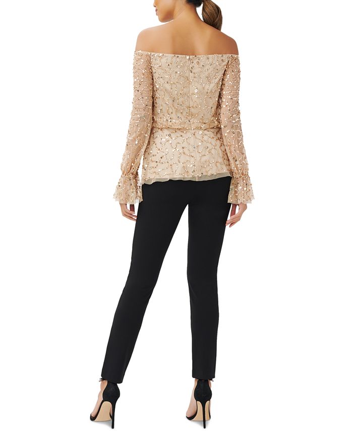 Stun at your next soirée in this shoulder-flaunting (and so sparkly!) top from Adrianna Papell.