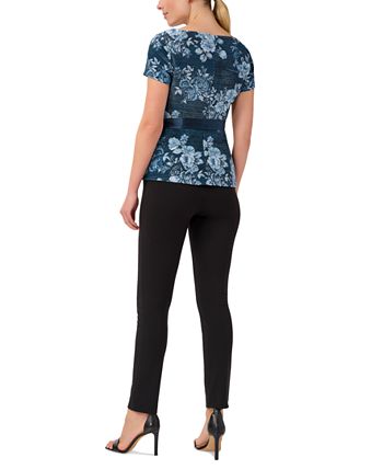 Looking chic is a cinch in Adrianna Papell’s belted top, blooming a floral print.