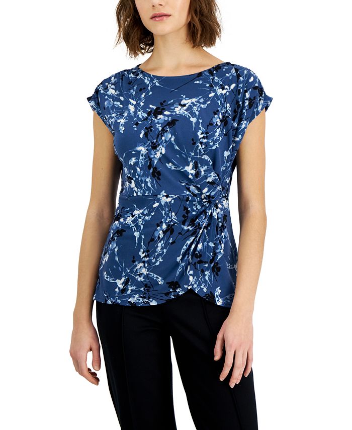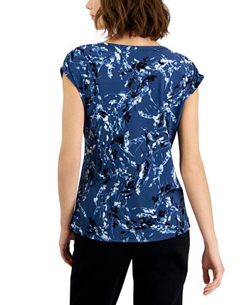 Freshen your favorite separates with this Alfani top, in a sleek contemporary print with a knot detail at the side.