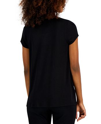 An outfit-building wardrobe essential every woman needs, Alfani’s sleek solid top features short sleeves and a satin trim at the scoop neckline.