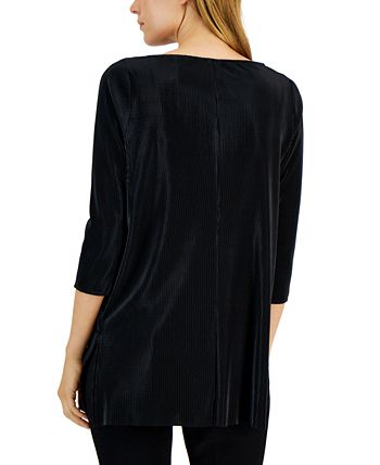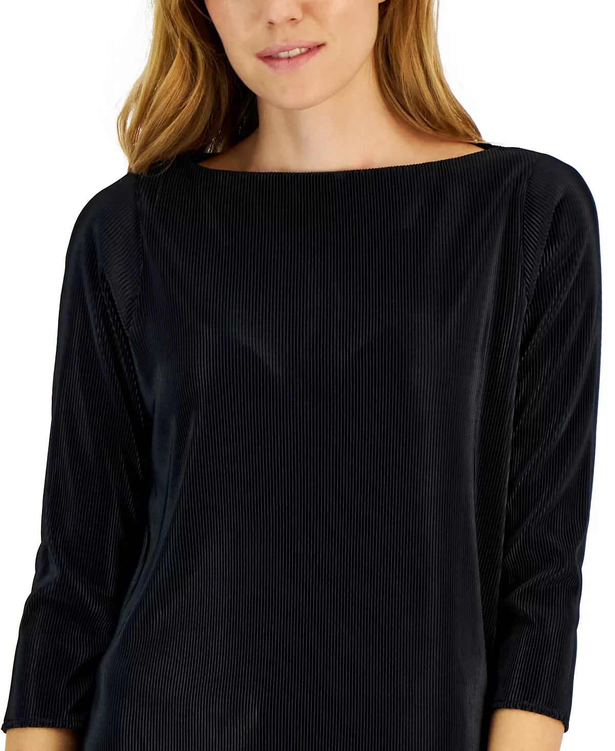 Sleek in a versatile solid color, this knit top from Alfani is polished with allover pleats and a graceful boat neckline.