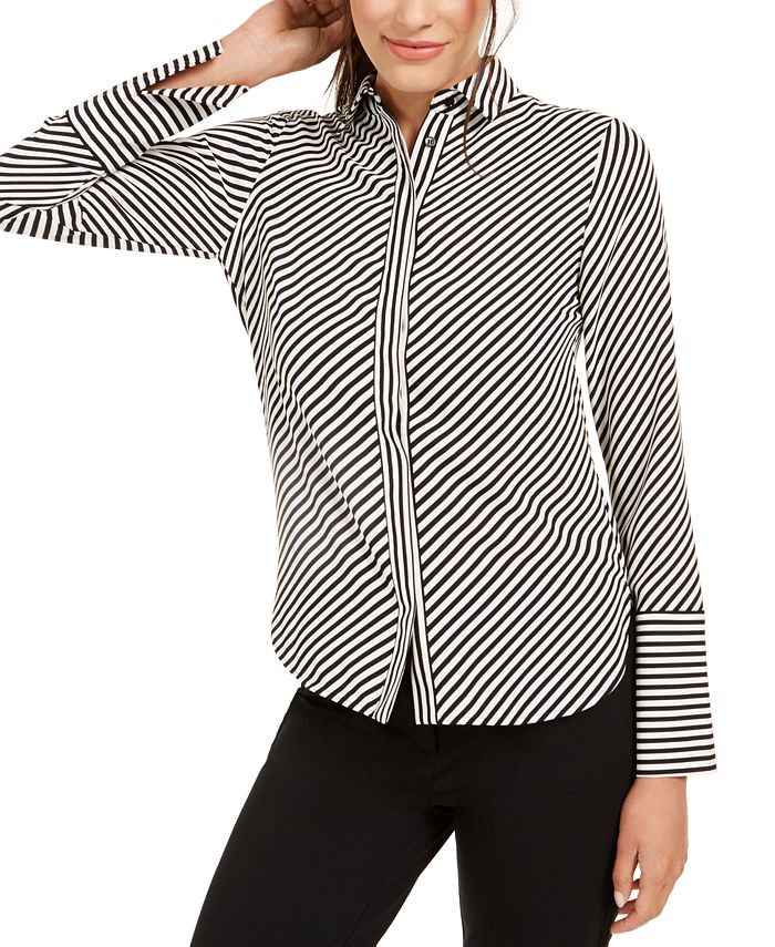 An essential building block for office outfits, this pretty blouse by Anne Klein features lovely details like slit cuffs and a rounded hem.