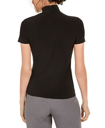 Anne Klein makes your workweek style polished and easy to pair with this versatile mock-neck short-sleeve top.