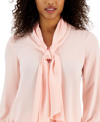 Anne Klein Women’s Chiffon Smocked-Cuff Bow Blouse