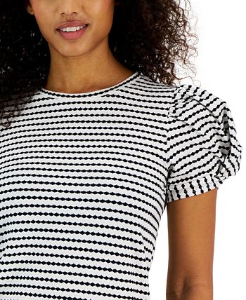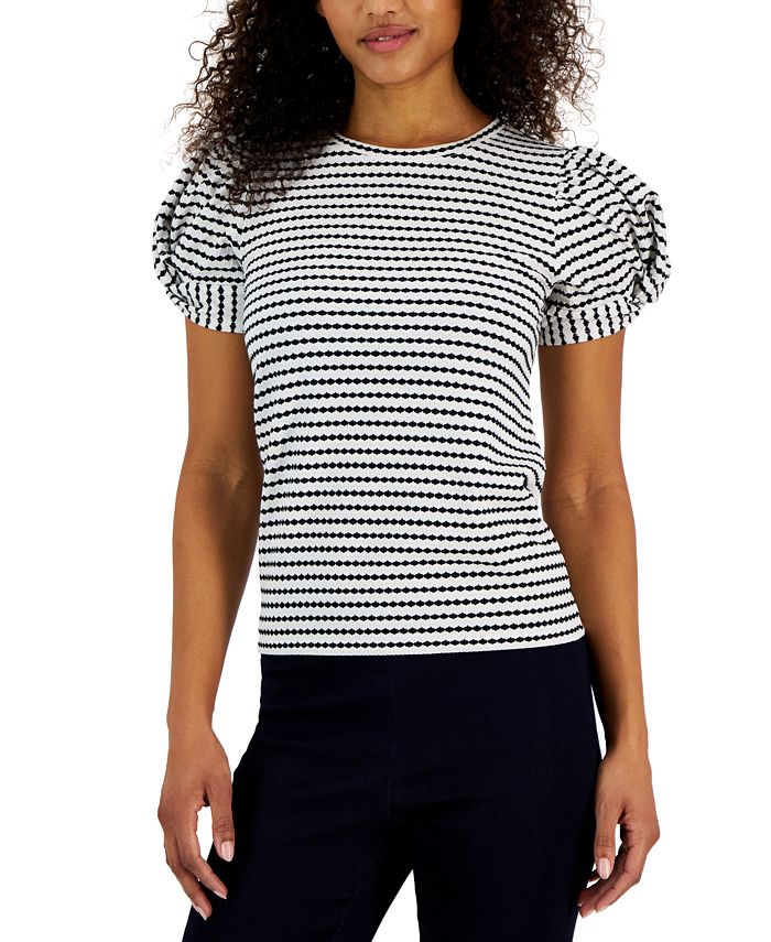 Bold puff sleeves and a textured allover stripe make a true dream team in this top from Anne Klein.