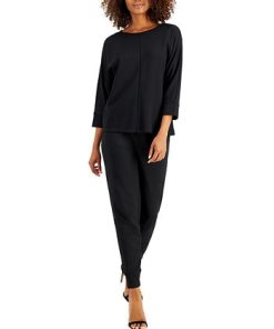 Classic with a fashionable twist, this blazer-inspired coat from Anne Klein is designed in glossy leather.