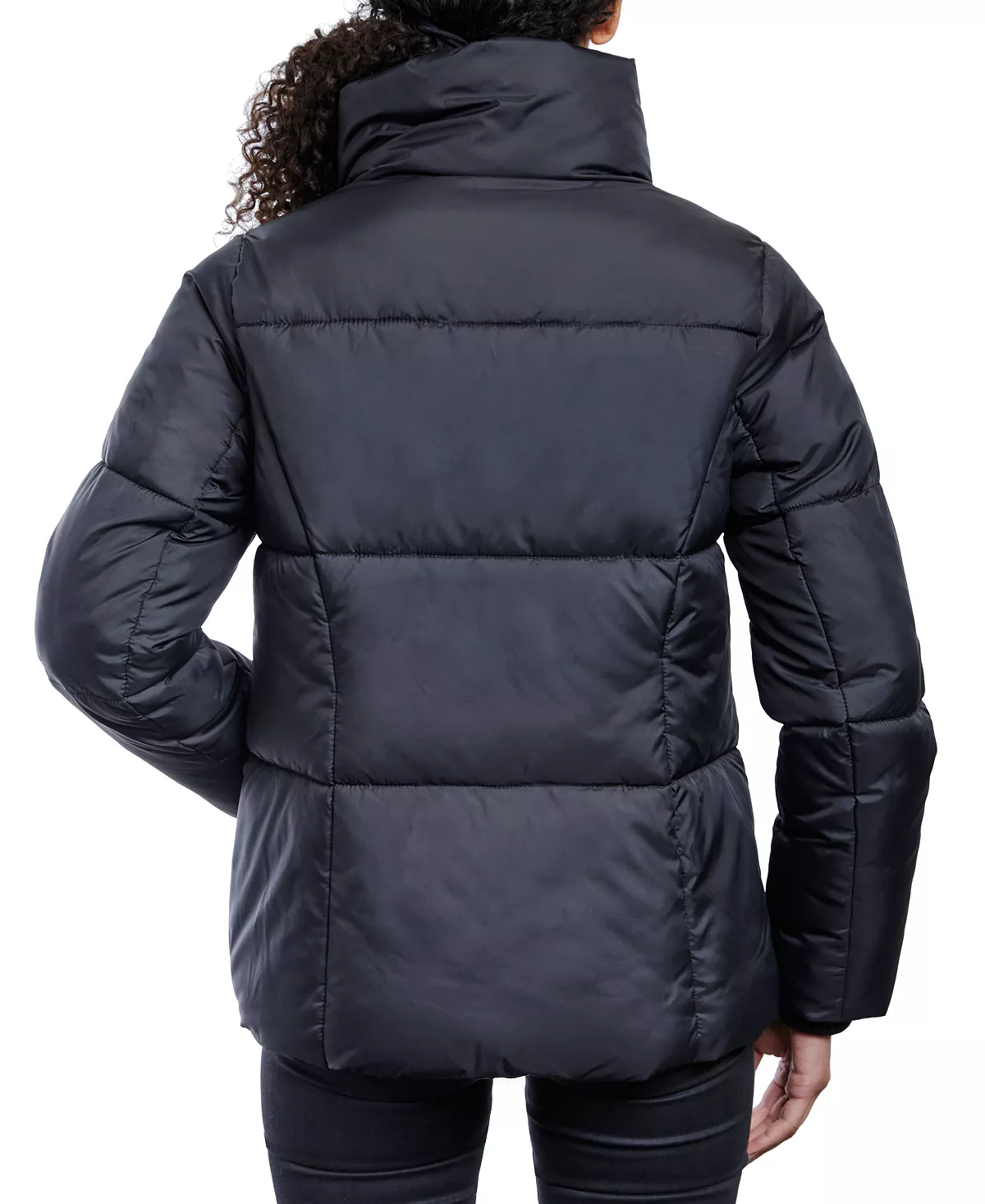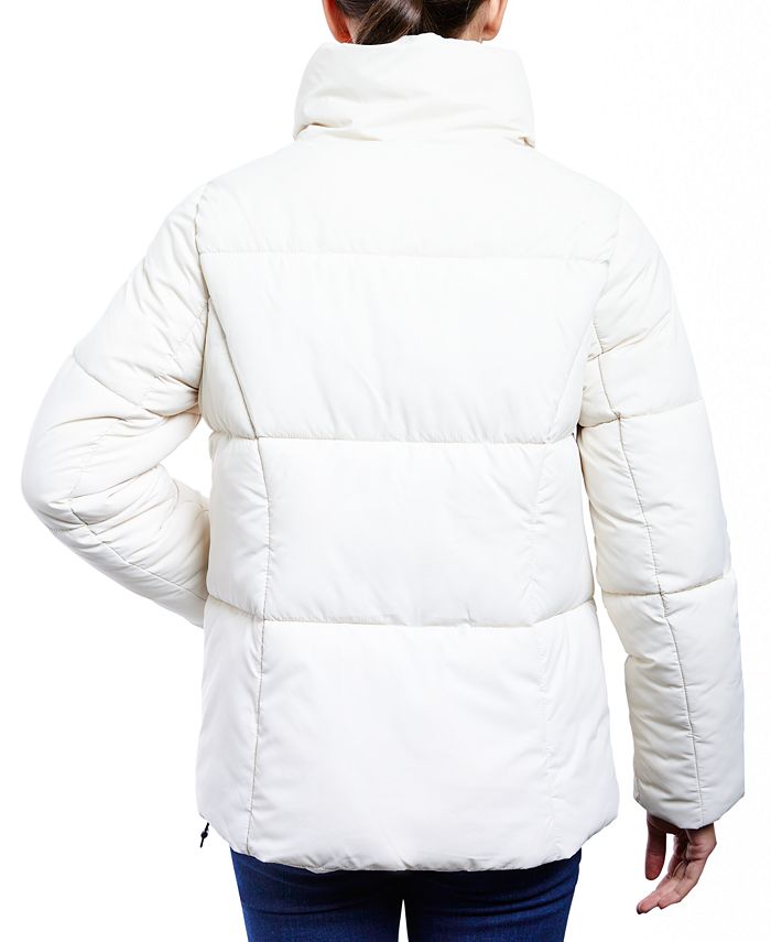 An oversized stand collar brings incredibly cozy style to this water-resistant puffer coat from Anne Klein.