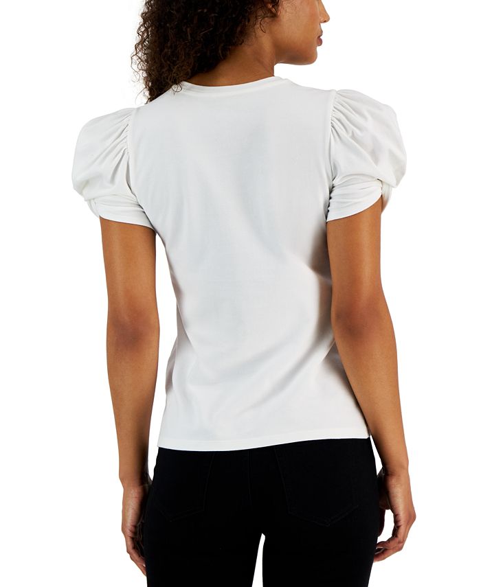 Twisted cuffs emphasize a short, puffed sleeve on this office-to-off-day top from Anne Klein.