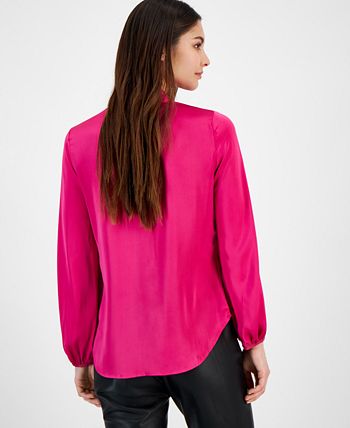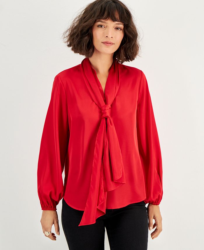 Be boardroom-ready with this blouse by Bar III that is elevated with bow-tie detail, lending a polished edge to a versatile look.