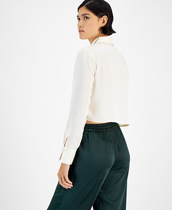 Bar III Women’s Cropped Button-Front Long-Sleeve Blouse, Created For Macy’s