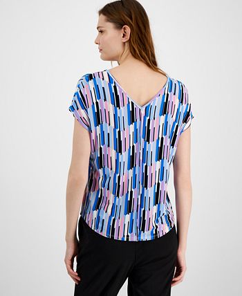 A fashion-forward twist on the beloved T-shirt, this vibrant V-neck top from Bar III takes center stage with a seamed front.