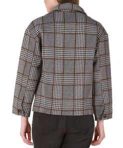 - Notched collar; button closures at front; removable belt