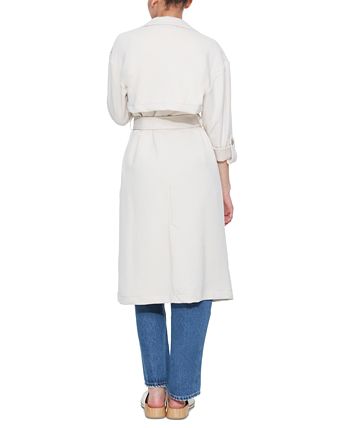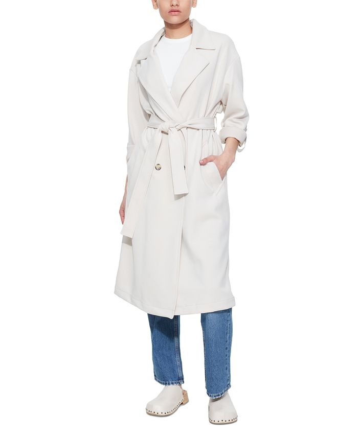Black Tape gives you style for days with this double-breasted knit trench coat that features a self-tie belt for a defined silhouette.