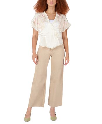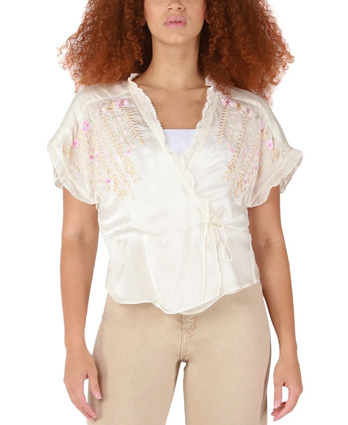 Hit all the right style marks with this gorgeous wrap top from Black Tape designed with beautifully embroidered floral detail.