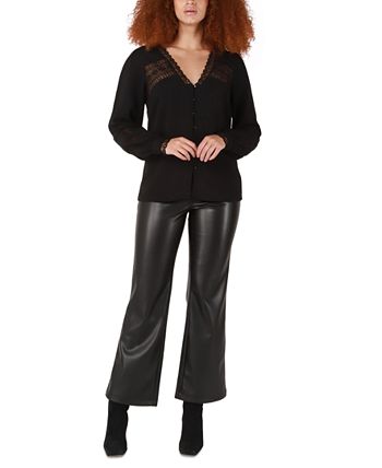 - Lace-trim V-neck; button-front closures