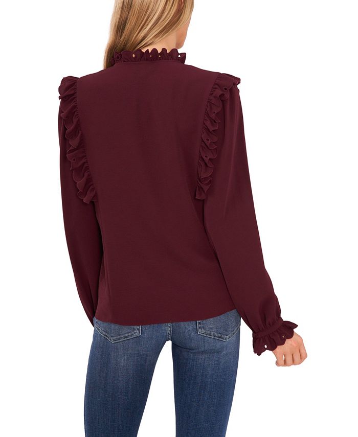 Perfectly polished with a ruffled tied neckline and ruffled cuffs, CeCe’s long-sleeve top easily dresses up any outfit, making it an ideal option for so many occasions.