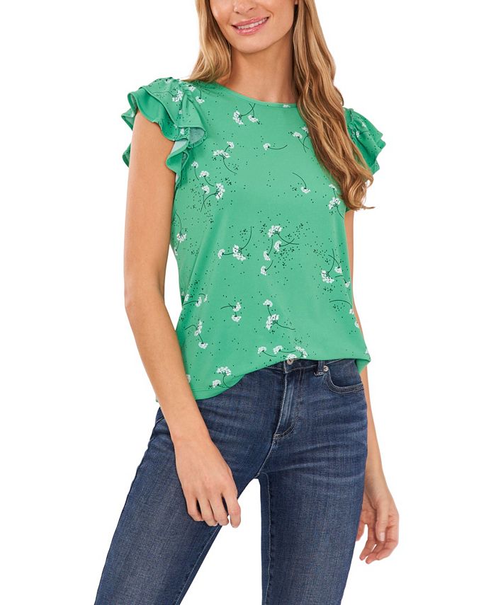 Feminine flutter sleeves and a floral cascade print lend charm to this top from CeCe, the ideal chic addition to a well-rounded closet.