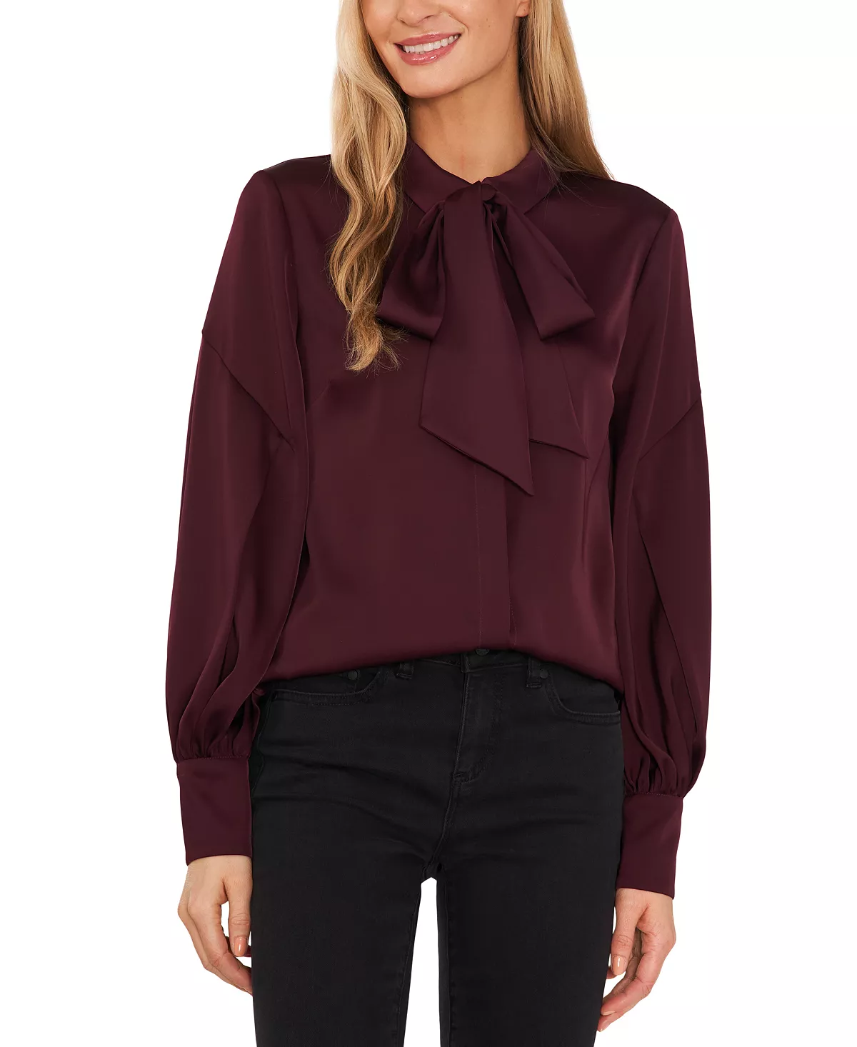 Elevate your office-ready look with this elegant long sleeve top from CeCe, finished with an ultra-chic bow detail at the neckline.