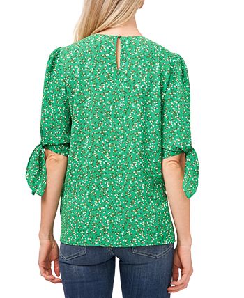 CeCe’s charming floral-inspired top is fashioned with sweet tie accents at each short sleeve.