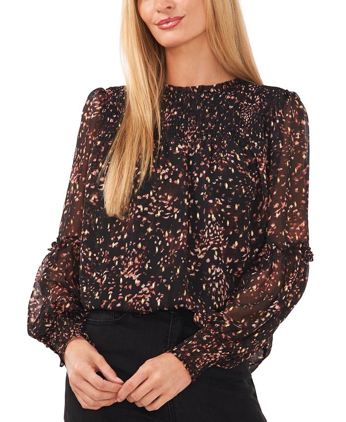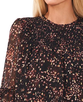 CeCe elevates the long sleeve top with a chic smocking detail around the neckline and cuffs.