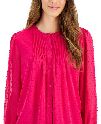 Ruffled sleeves and pretty pintucks bring this Charter Club blouse to life. Complimented with beautiful texture and button-front closures, this is a must-have for any closet.