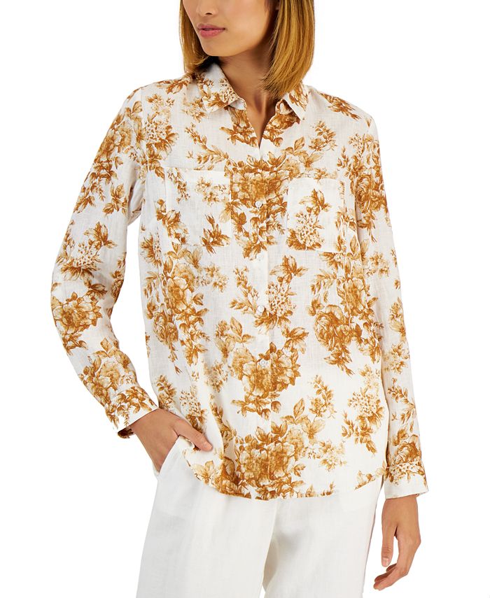 Made from all linen, this floral-print shirt from Charter Club is sure to brighten up your casual look.
