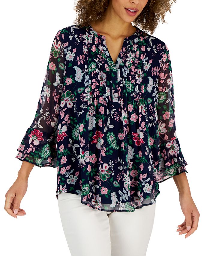 Add a touch of romance to any outfit with this flirty, charming top by Charter Club.