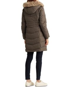 Michael Kors Women’s Belted Hooded Faux-Fur-Trim Puffer Coat