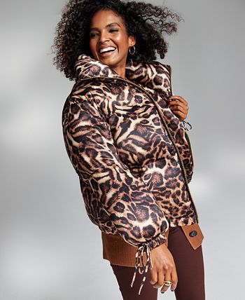 INC International Concepts turns ordinary into extraordinary with this animal-print puffer jacket, featuring tie details at each cuff.