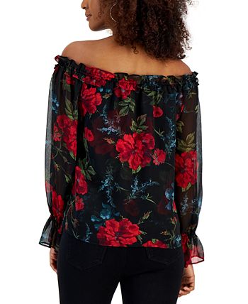 An off-the-shoulder neckline lends a little romance to this chiffon blouse from INC International Concepts.