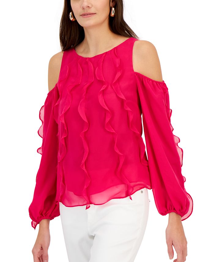 The ruffles add a charming finish to this go-with-anything top from INC International Concepts®.