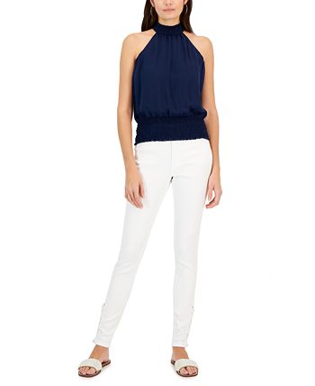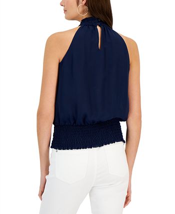 The keyhole back closure and smocked mock neckline draw attention up towards your face, elongating your figure with this sleeveless blouse from INC International Concepts.