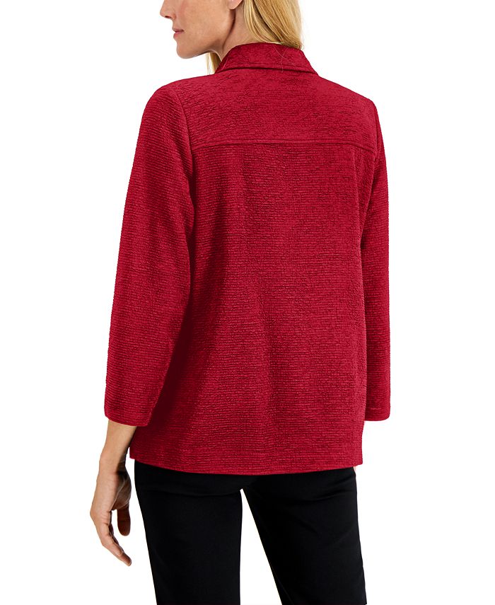 Pull your look together with this button-front jacket from JM Collection. A subtle texture elevates this piece and will complete any stylish casual outfit.