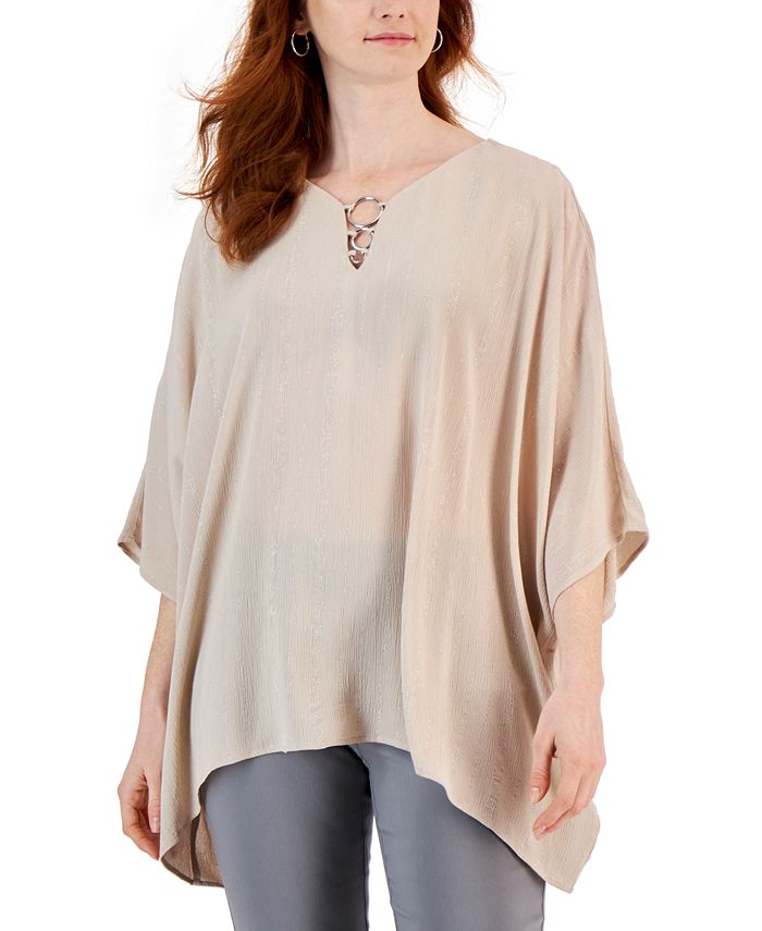 Embrace the shimmer of Lurex in this poncho from JM Collection designed with O-ring detail at the neckline.