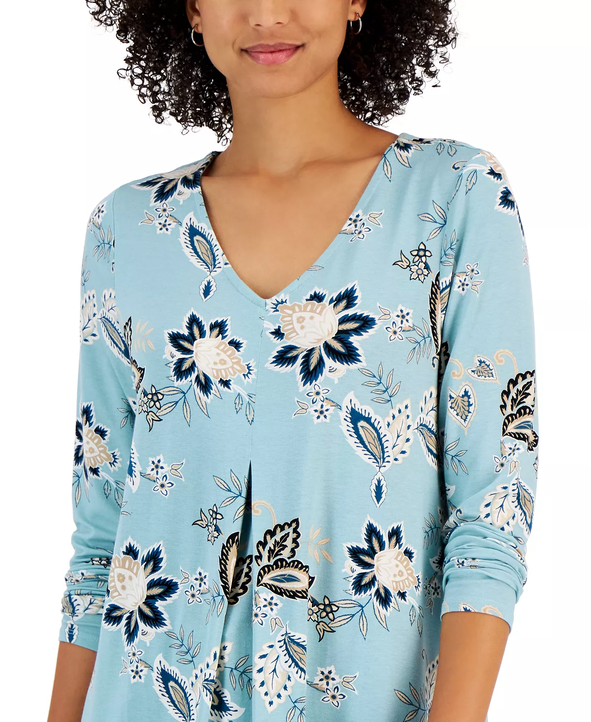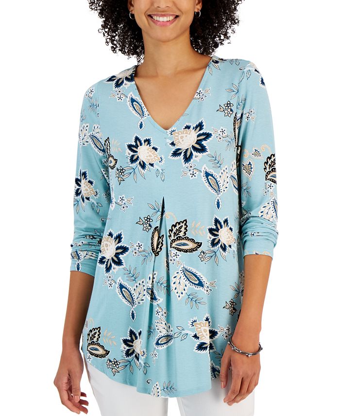 JM Collection Women’s Printed V-Neck 3/4-Sleeve Tunic, Created For Macy’s
