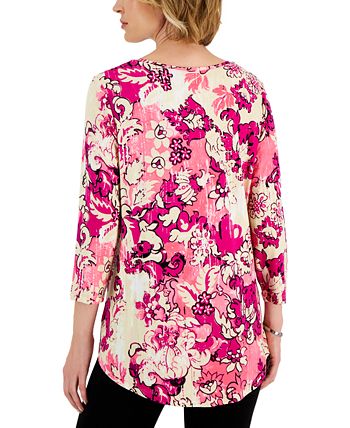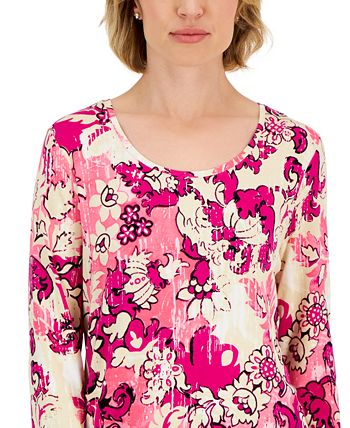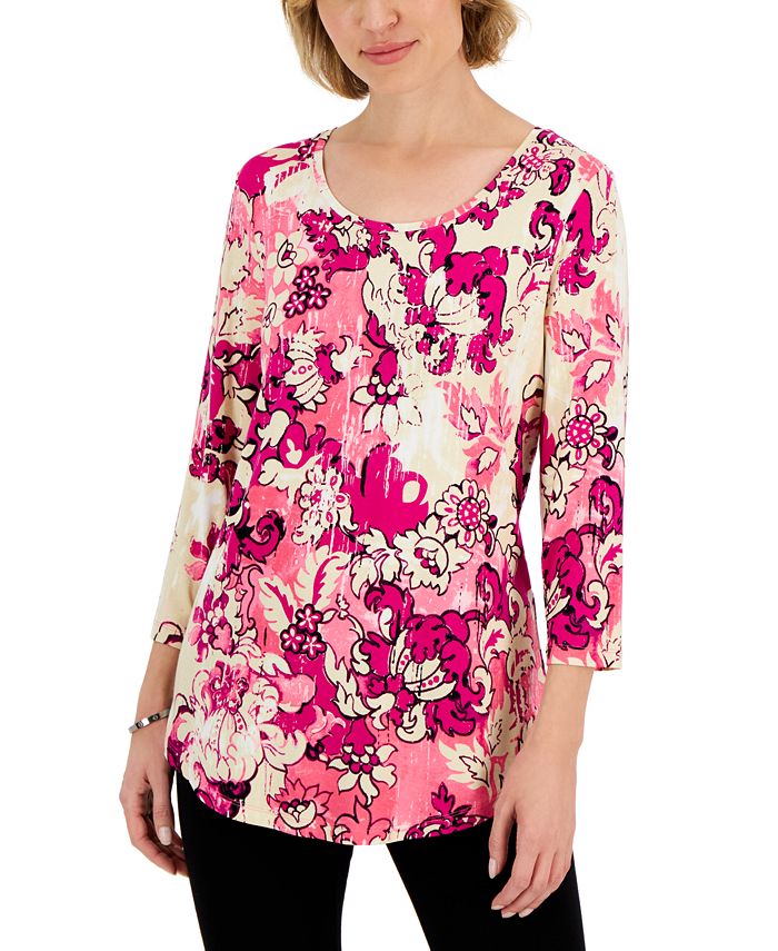 Vibrant in a contemporary floral motif, this knit top from JM Collection gives you an easy feel and fresh look.