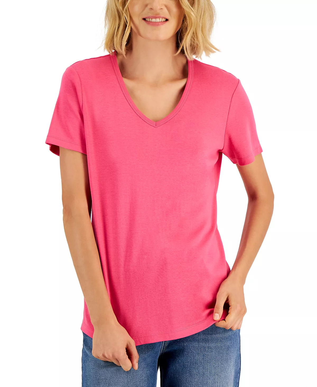 A comfy classic you’ll turn to again and again, this versatile Karen Scott top gives you the soft feel of all cotton and endless styling options.