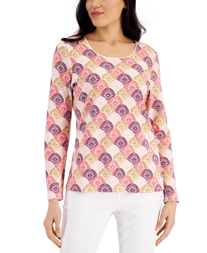 A pretty print and distinctive color freshen this look from Karen Scott, a relaxed silhouette that offers stylish possibilities.
