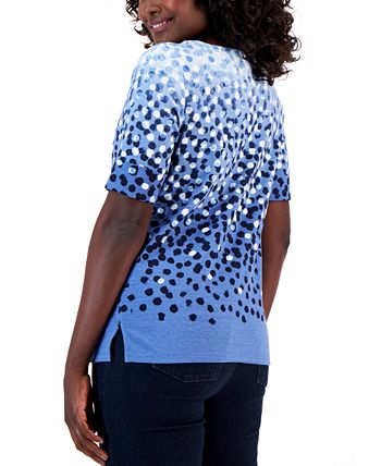 Polish your look with this comfy top from Karen Scott, a relaxed knit with a dot print and elbow sleeves.