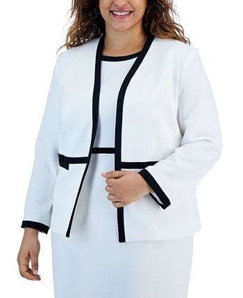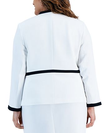 For a structured work look, top off your outfit with this contrast-trim plus size blazer from Kasper.