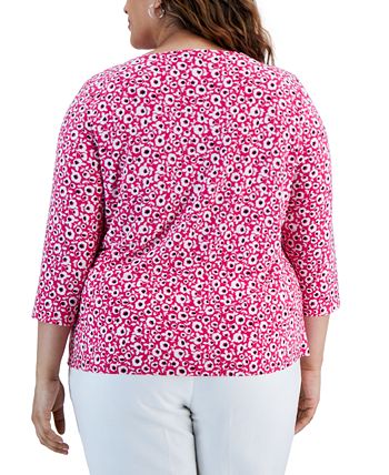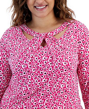 Kasper Plus Size Cut-Out Floral-Print 3/4-Sleeve Top