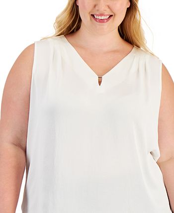 A tiny bar embellishment highlights the classic V-neck on this plus size camisole from Kasper.