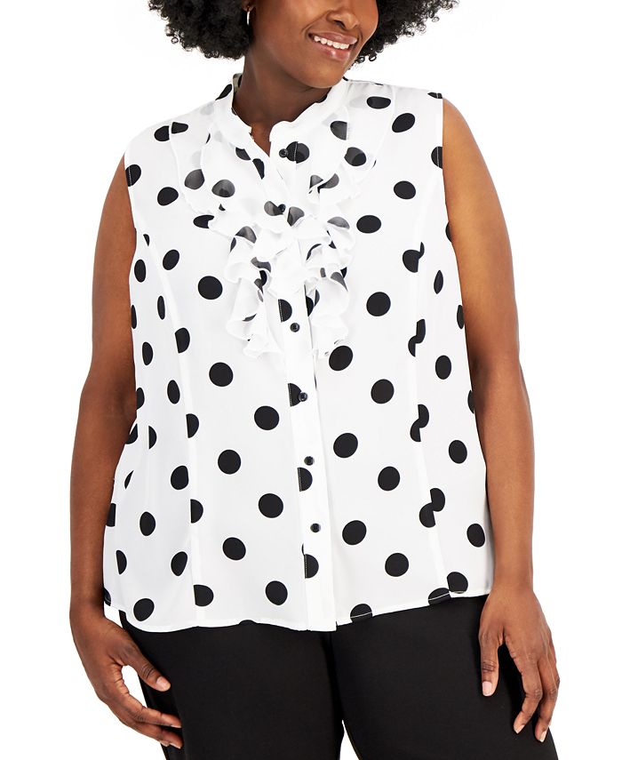 Bring some new life to your work look in this plus size sleeveless top from Kasper, covered in a timeless polka dot print.