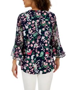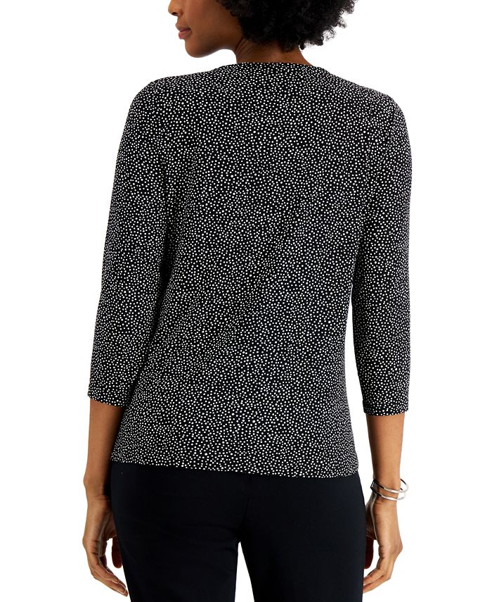 Mix things up in this 3/4-sleeve top from Kasper, a printed pick designed with a twisted neckline accented by cutouts.
