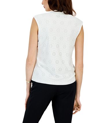 Delicate eyelet details bring fresh texture to this Kasper blouse, making it a polished look on its own or worn under a sleek blazer.