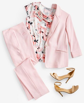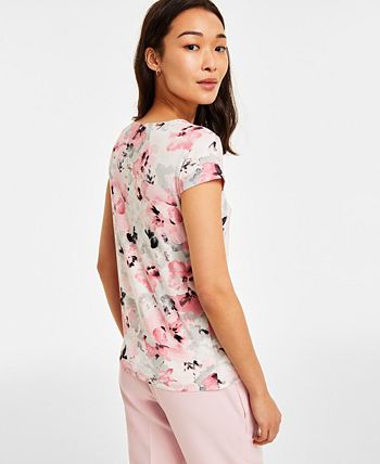 Kasper Women’s Floral-Print Cap-Sleeve Cowlneck Top, Created For Macy’s