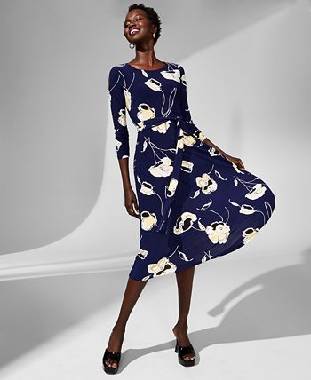 - Boat neck; Fit & flare silhouette