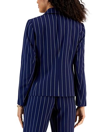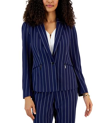 Zip pockets lend a modern edge to this pinstriped blazer from Kasper.